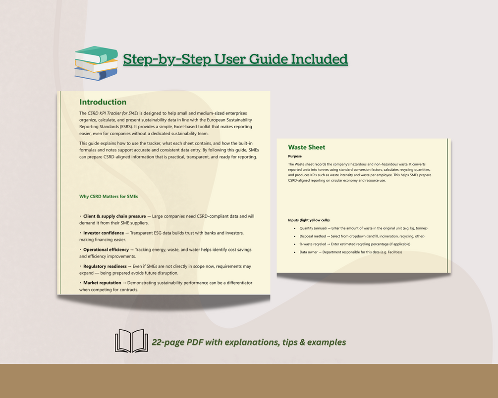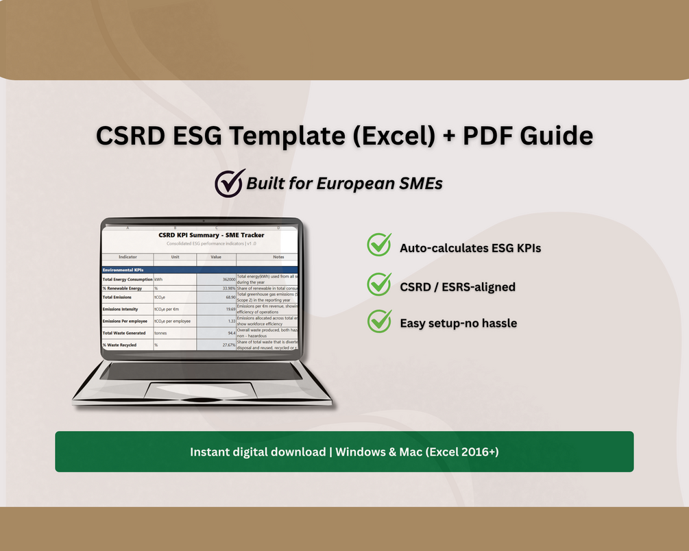 CSRD & ESG Excel Tracker for SMEs | Sustainability Excel Template + PDF User Guide