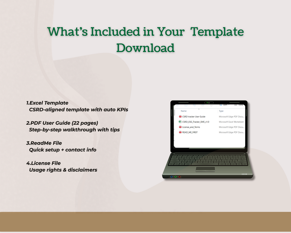 An Excel + PDF toolkit designed for European SMEs to easily manage sustainability data and stay ready for CSRD reporting expectations — even if you’re not yet legally required to report.